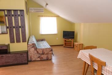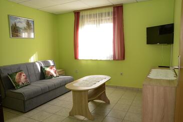 Appartamento può accogliere 4 ospiti. I letti sono disposti nelle camere da letto che sono 2, su 50m2. Gli ospiti hanno a disposizione il proprio terrazzo per godere nelle calde serate estive. Si può preparare il cibo utilizzando il barbecue comune. Durante il soggiorno gli ospiti possono utilizzare la piscina comune. Nell'unità di alloggio si possono portare gli animali domestici con un pagamento supplementare.