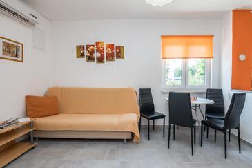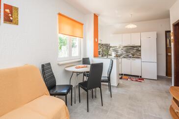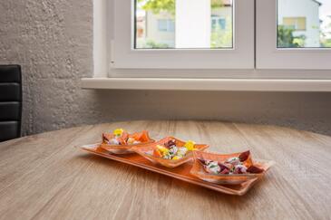 Appartamento può accogliere 4 ospiti. I letti sono disposti nelle camere da letto che sono 2, su 49m2. Gli ospiti hanno a disposizione il proprio terrazzo per godere nelle calde serate estive. Per il piacere totale e il relax c'è il barbecue privato solo per gli ospiti di quest'alloggio. Nell'unità di alloggio si possono portare gli animali domestici senza alcun pagamento supplementare.