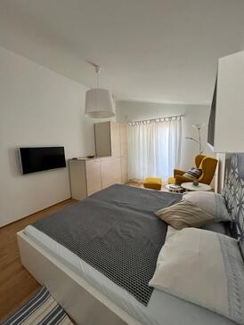 Appartamento può accogliere 4 ospiti. I letti sono disposti nelle camere da letto che sono 2, su 50m2. Gli ospiti hanno a disposizione il proprio terrazzo per godere nelle calde serate estive. Si può preparare il cibo utilizzando il barbecue comune.