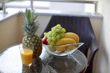 Appartamento può accogliere 5 ospiti. I letti sono disposti nelle camere da letto che sono 2, e nella camera di soggiorno, su 63m2. Gli ospiti hanno a disposizione il proprio balcone per godere delle calde serate estive. Si può preparare il cibo utilizzando il barbecue comune.