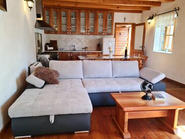 Casa può accogliere 5 ospiti. I letti sono disposti nelle camere da letto che sono 2, e nella camera di soggiorno, su 70m2. Gli ospiti hanno a disposizione il proprio terrazzo per godere nelle calde serate estive. Per il piacere totale e il relax c'è il barbecue privato solo per gli ospiti di quest'alloggio. Nell'unità di alloggio si possono portare gli animali domestici con un pagamento supplementare.