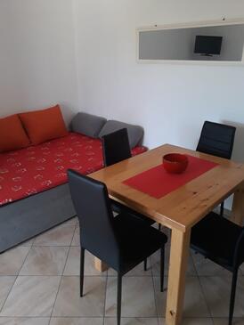 Appartamento può accogliere 8 ospiti. I letti sono disposti nelle camere da letto che sono 2, e nella camera di soggiorno, su 57m2. Gli ospiti hanno a disposizione il proprio terrazzo per godere nelle calde serate estive. Dall'appartamento si gode di una vista sul mare. Si può preparare il cibo utilizzando il barbecue comune. Nell'unità di alloggio si possono portare gli animali domestici con un pagamento supplementare.