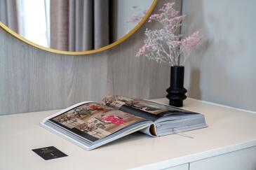 Appartamento può accogliere 2 ospiti. I letti sono disposti nelle camere da letto che sono 1, su 38m2. Gli ospiti hanno a disposizione il proprio balcone per godere delle calde serate estive. Dall'appartamento si gode di una vista sul mare. Si può preparare il cibo utilizzando il barbecue comune.