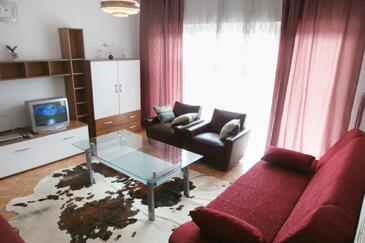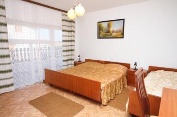 Appartamento può accogliere 10 ospiti. I letti sono disposti nelle camere da letto che sono 3, e nella camera di soggiorno, su 82m2. Gli ospiti hanno a disposizione il proprio terrazzo per godere nelle calde serate estive. Dall'appartamento si gode di una vista sul mare. Si può preparare il cibo utilizzando il barbecue comune. Durante il soggiorno gli ospiti possono utilizzare la piscina comune.