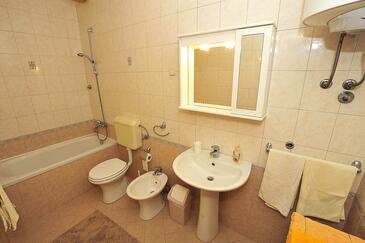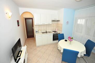 Appartamento può accogliere 5 ospiti. I letti sono disposti nelle camere da letto che sono 2, su 65m2. Gli ospiti hanno a disposizione il proprio terrazzo per godere nelle calde serate estive. Dall'appartamento si gode di una vista sul mare. Si può preparare il cibo utilizzando il barbecue comune.