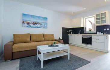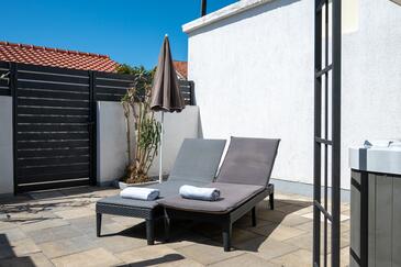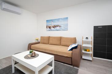 Casa può accogliere 5 ospiti. I letti sono disposti nelle camere da letto che sono 2, e nella camera di soggiorno, su 60m2. Gli ospiti hanno a disposizione il proprio terrazzo per godere nelle calde serate estive. Per il piacere totale e il relax c'è il barbecue privato solo per gli ospiti di quest'alloggio. Le stanze dell'unità d'alloggio non sono connesse in un insieme.