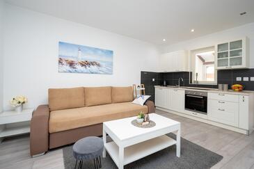 Casa può accogliere 5 ospiti. I letti sono disposti nelle camere da letto che sono 2, e nella camera di soggiorno, su 60m2. Gli ospiti hanno a disposizione il proprio terrazzo per godere nelle calde serate estive. Per il piacere totale e il relax c'è il barbecue privato solo per gli ospiti di quest'alloggio. Nell'unità di alloggio si possono portare gli animali domestici senza alcun pagamento supplementare. Le stanze dell'unità d'alloggio non sono connesse in un insieme.