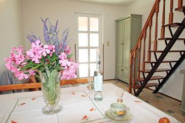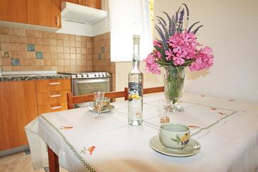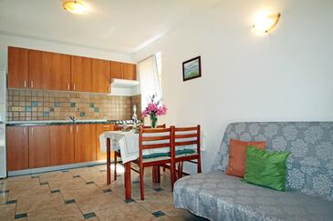 Appartamento può accogliere 5 ospiti. I letti sono disposti nelle camere da letto che sono 2, e nella camera di soggiorno, su 39m2. Gli ospiti hanno a disposizione il proprio terrazzo per godere nelle calde serate estive. Dall'appartamento si gode di una vista sul mare. Si può preparare il cibo utilizzando il barbecue comune.