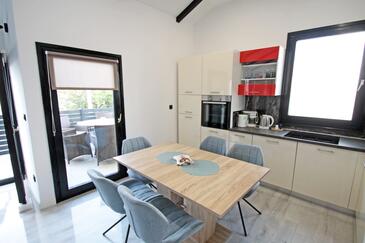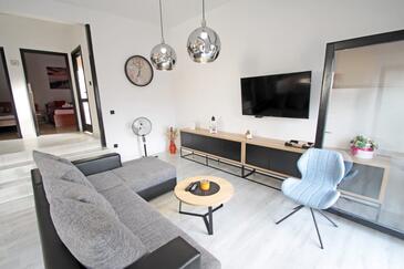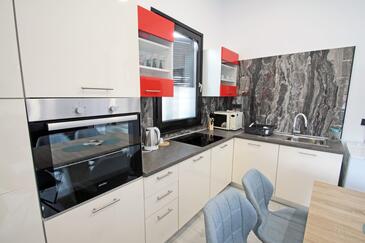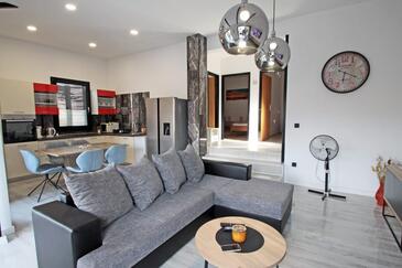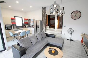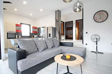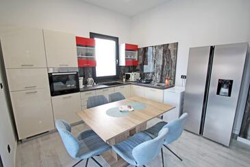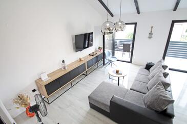 Casa può accogliere 6 ospiti. I letti sono disposti nelle camere da letto che sono 2, e nella camera di soggiorno, su 95m2. Gli ospiti hanno a disposizione il proprio terrazzo per godere nelle calde serate estive. Dalla casa si gode di una vista sul mare. Per il piacere totale e il relax c'è il barbecue privato solo per gli ospiti di quest'alloggio. Nell'unità di alloggio si possono portare gli animali domestici senza alcun pagamento supplementare.