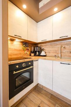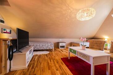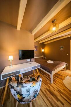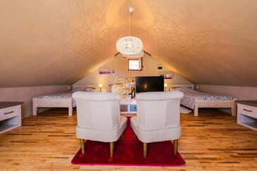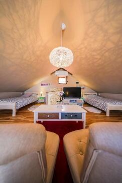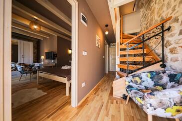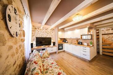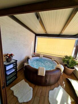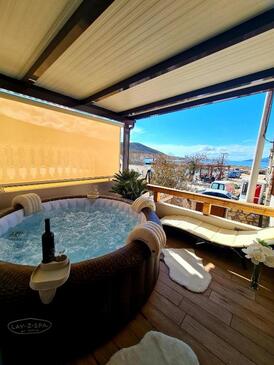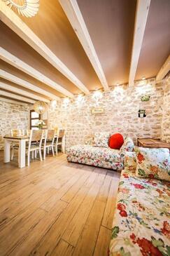 Casa può accogliere 8 ospiti. I letti sono disposti nelle camere da letto che sono 3, su 78m2. Gli ospiti hanno a disposizione il proprio balcone per godere delle calde serate estive. Dalla casa si gode di una vista sul mare. Per il piacere totale e il relax c'è il barbecue privato solo per gli ospiti di quest'alloggio. Nell'unità di alloggio si possono portare gli animali domestici senza alcun pagamento supplementare.