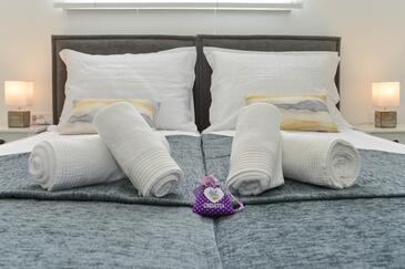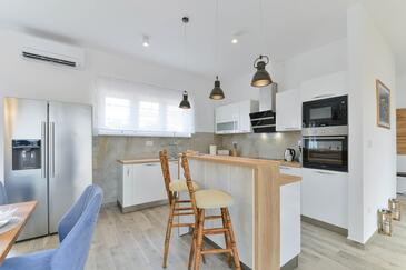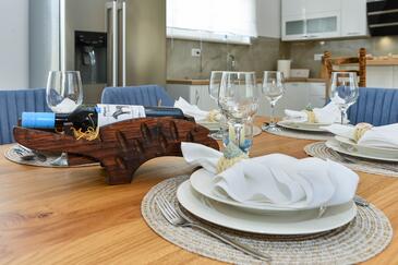 Casa può accogliere 8 ospiti. I letti sono disposti nelle camere da letto che sono 4, su 130m2. Gli ospiti hanno a disposizione il proprio terrazzo per godere nelle calde serate estive. Per il piacere totale e il relax c'è il barbecue privato solo per gli ospiti di quest'alloggio. Durante il soggiorno gli ospiti si possono rilassare nella piscina privata. Arrivati nell'unità d'alloggio i clienti devono pagare un deposito (il prezzo è indicato sul sito).