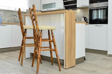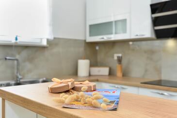 Casa può accogliere 8 ospiti. I letti sono disposti nelle camere da letto che sono 4, su 130m2. Gli ospiti hanno a disposizione il proprio terrazzo per godere nelle calde serate estive. Per il piacere totale e il relax c'è il barbecue privato solo per gli ospiti di quest'alloggio. Durante il soggiorno gli ospiti si possono rilassare nella piscina privata. Arrivati nell'unità d'alloggio i clienti devono pagare un deposito (il prezzo è indicato sul sito).