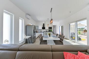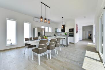Casa può accogliere 8 ospiti. I letti sono disposti nelle camere da letto che sono 4, su 130m2. Gli ospiti hanno a disposizione il proprio terrazzo per godere nelle calde serate estive. Per il piacere totale e il relax c'è il barbecue privato solo per gli ospiti di quest'alloggio. Durante il soggiorno gli ospiti possono utilizzare la piscina comune.