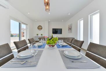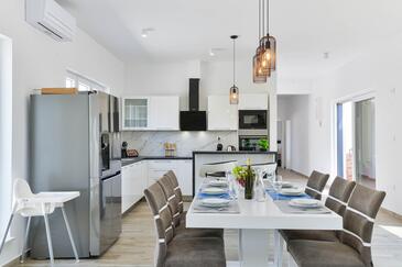 Casa può accogliere 8 ospiti. I letti sono disposti nelle camere da letto che sono 4, su 130m2. Gli ospiti hanno a disposizione il proprio terrazzo per godere nelle calde serate estive. Per il piacere totale e il relax c'è il barbecue privato solo per gli ospiti di quest'alloggio. Durante il soggiorno gli ospiti possono utilizzare la piscina comune.