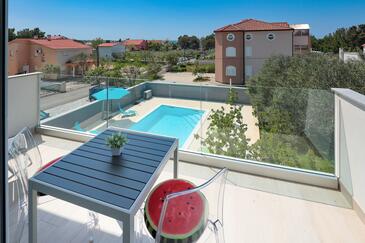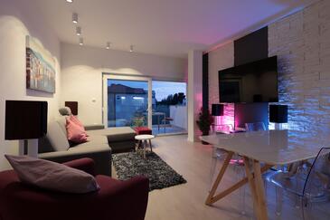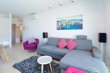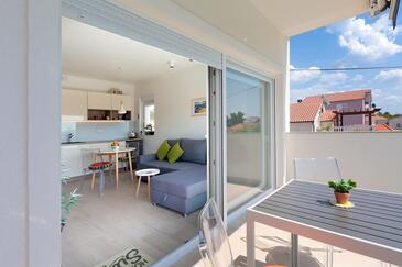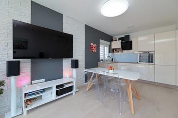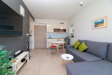 Appartamento può accogliere 6 ospiti. I letti sono disposti nelle camere da letto che sono 2, e nella camera di soggiorno, su 64m2. Gli ospiti hanno a disposizione il proprio balcone per godere delle calde serate estive. Si può preparare il cibo utilizzando il barbecue comune. Durante il soggiorno gli ospiti possono utilizzare la piscina comune.