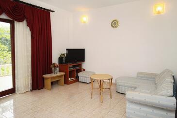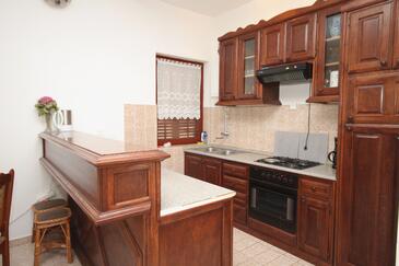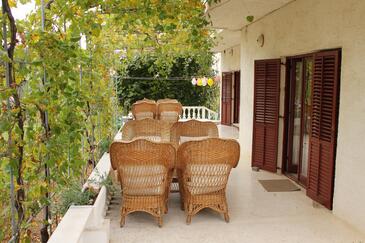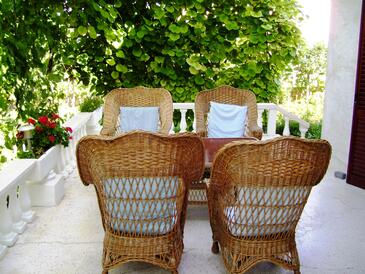Appartamento può accogliere 8 ospiti. I letti sono disposti nelle camere da letto che sono 4, su 120m2. Gli ospiti hanno a disposizione il proprio terrazzo per godere nelle calde serate estive. Dall'appartamento si gode di una vista sul mare. Si può preparare il cibo utilizzando il barbecue comune. Nell'unità di alloggio si possono portare gli animali domestici senza alcun pagamento supplementare.