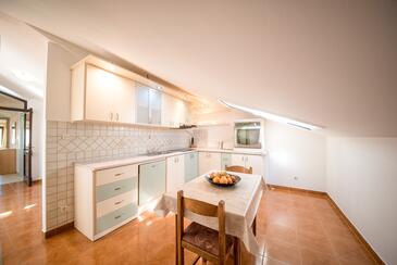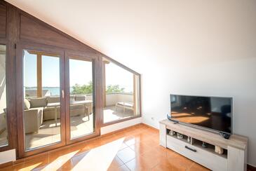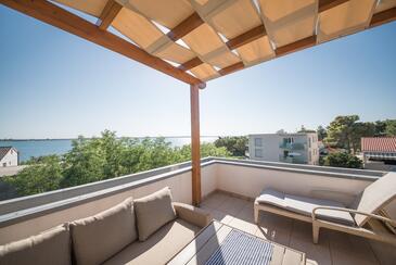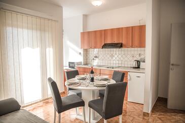 Appartamento può accogliere 5 ospiti. I letti sono disposti nelle camere da letto che sono 2, e nella camera di soggiorno, su 83m2. Gli ospiti hanno a disposizione il proprio terrazzo per godere nelle calde serate estive. Dall'appartamento si gode di una vista sul mare. Si può preparare il cibo utilizzando il barbecue comune.