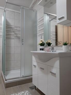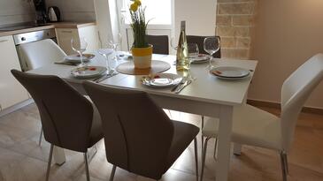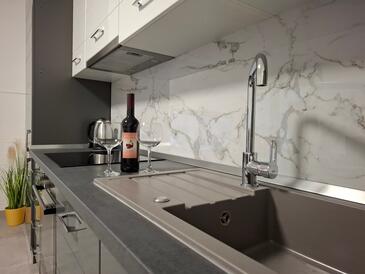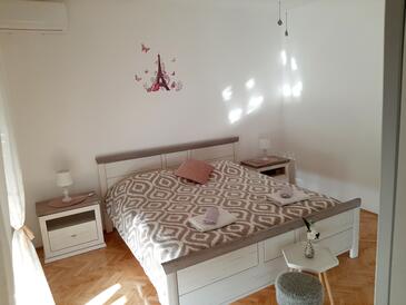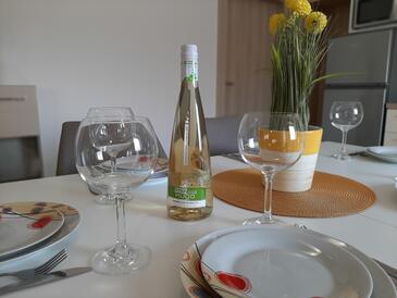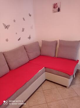Appartamento può accogliere 5 ospiti. I letti sono disposti nelle camere da letto che sono 2, su 74m2. Gli ospiti hanno a disposizione il proprio terrazzo per godere nelle calde serate estive. Dall'appartamento si gode di una vista sul mare. Si può preparare il cibo utilizzando il barbecue comune.