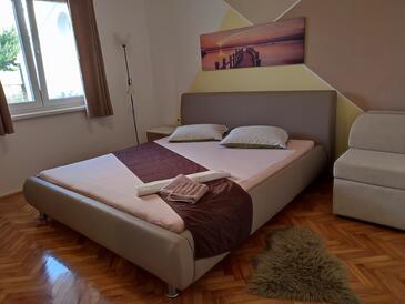 Appartamento può accogliere 4 ospiti. I letti sono disposti nelle camere da letto che sono 2, su 66m2. Gli ospiti hanno a disposizione il proprio terrazzo per godere nelle calde serate estive. Dall'appartamento si gode di una vista sul mare. Si può preparare il cibo utilizzando il barbecue comune.