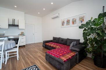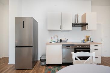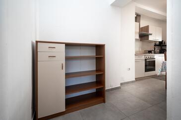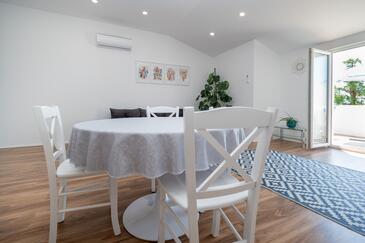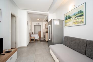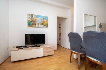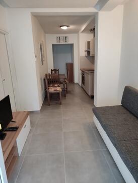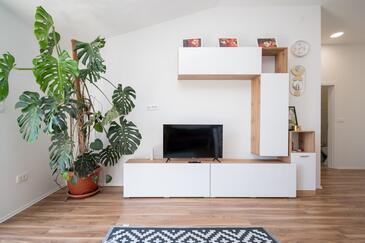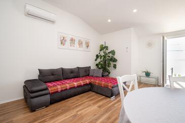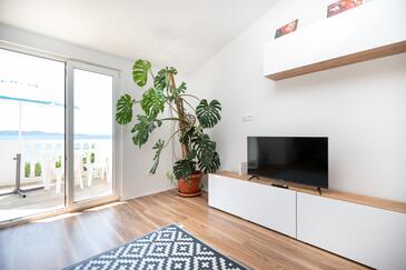 Appartamento può accogliere 4 ospiti. I letti sono disposti nelle camere da letto che sono 2, su 50m2. Gli ospiti hanno a disposizione il proprio terrazzo per godere nelle calde serate estive. Dall'appartamento si gode di una vista sul mare.