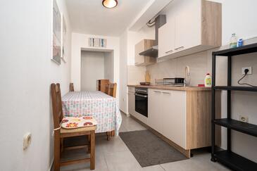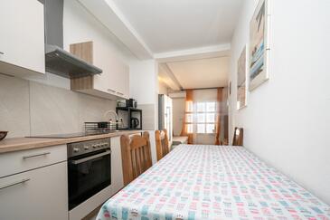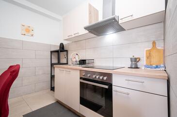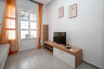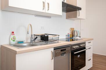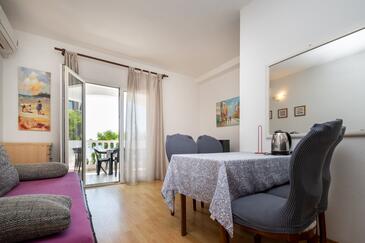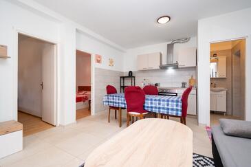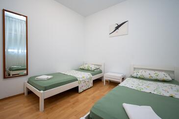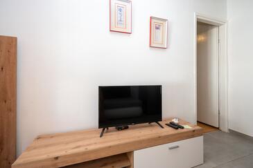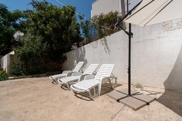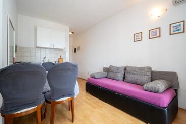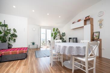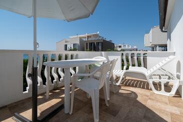 Appartamento può accogliere 4 ospiti. I letti sono disposti nelle camere da letto che sono 2, su 50m2. Gli ospiti hanno a disposizione il proprio terrazzo per godere nelle calde serate estive. Dall'appartamento si gode di una vista sul mare.