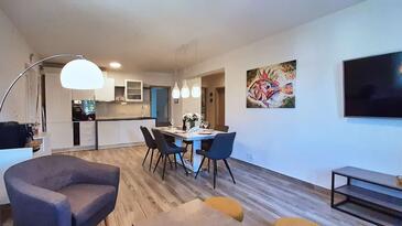 Casa può accogliere 6 ospiti. I letti sono disposti nelle camere da letto che sono 3, su 86m2. Gli ospiti hanno a disposizione il proprio terrazzo per godere nelle calde serate estive. Dalla casa si gode di una vista sul mare. Per il piacere totale e il relax c'è il barbecue privato solo per gli ospiti di quest'alloggio.