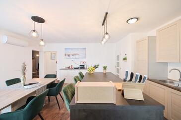 Appartamento può accogliere 7 ospiti. I letti sono disposti nelle camere da letto che sono 3, e nella camera di soggiorno, su 138m2. Gli ospiti hanno a disposizione il proprio terrazzo per godere nelle calde serate estive. Si può preparare il cibo utilizzando il barbecue comune.