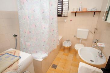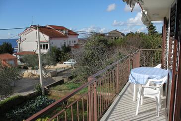 Appartamento può accogliere 5 ospiti. I letti sono disposti nelle camere da letto che sono 2, e nella sala da pranzo, su 60m2. Gli ospiti hanno a disposizione il proprio balcone per godere delle calde serate estive. Dall'appartamento si gode di una vista sul mare. Si può preparare il cibo utilizzando il barbecue comune.