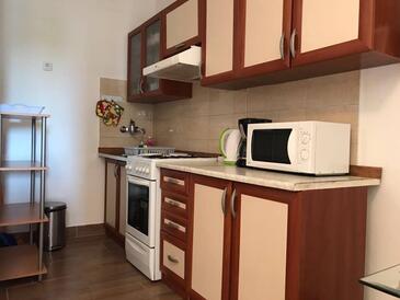 Appartamento può accogliere 9 ospiti. I letti sono disposti nelle camere da letto che sono 3, su 100m2. Gli ospiti hanno a disposizione il proprio terrazzo per godere nelle calde serate estive. Dall'appartamento si gode di una vista sul mare. Si può preparare il cibo utilizzando il barbecue comune. Nell'unità di alloggio si possono portare gli animali domestici con un pagamento supplementare.