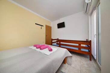 Appartamento può accogliere 4 ospiti. I letti sono disposti nelle camere da letto che sono 2, su 44m2. Gli ospiti hanno a disposizione il proprio balcone per godere delle calde serate estive. Si può preparare il cibo utilizzando il barbecue comune.
