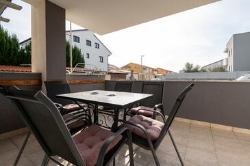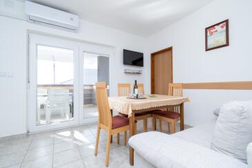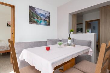 Appartamento può accogliere 6 ospiti. I letti sono disposti nelle camere da letto che sono 3, su 67m2. Gli ospiti hanno a disposizione il proprio terrazzo per godere nelle calde serate estive. Si può preparare il cibo utilizzando il barbecue comune.