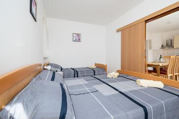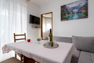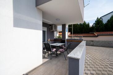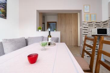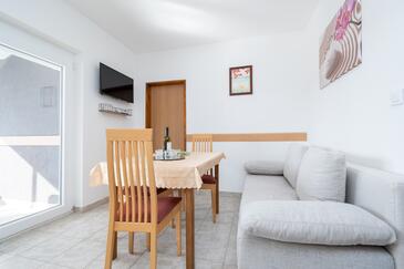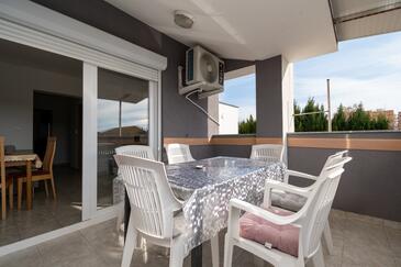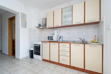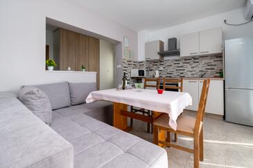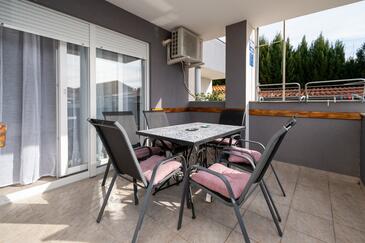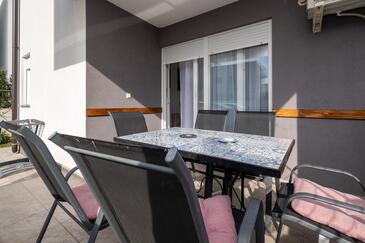 Appartamento può accogliere 6 ospiti. I letti sono disposti nelle camere da letto che sono 3, su 67m2. Gli ospiti hanno a disposizione il proprio terrazzo per godere nelle calde serate estive. Si può preparare il cibo utilizzando il barbecue comune.