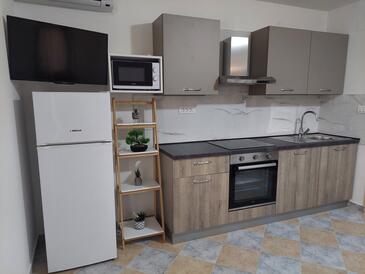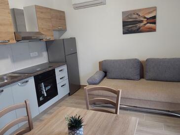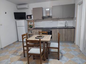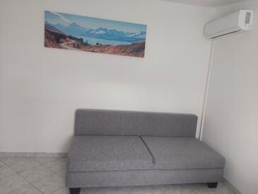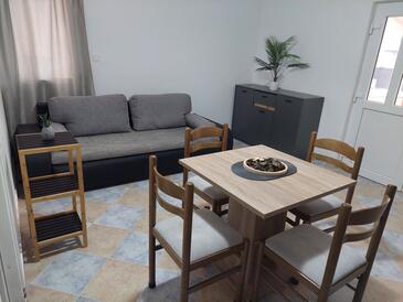 Appartamento può accogliere 4 ospiti. I letti sono disposti nelle camere da letto che sono 2, su 55m2. Gli ospiti hanno a disposizione il proprio terrazzo per godere nelle calde serate estive. Si può preparare il cibo utilizzando il barbecue comune.