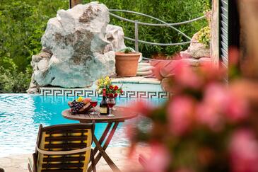 Casa può accogliere 12 ospiti. I letti sono disposti nelle camere da letto che sono 6, su 191m2. Gli ospiti hanno a disposizione il proprio terrazzo per godere nelle calde serate estive. Per il piacere totale e il relax c'è il barbecue privato solo per gli ospiti di quest'alloggio. Durante il soggiorno gli ospiti si possono rilassare nella piscina privata. L'unità d'alloggio ha delle stanze separate dal resto dell'unità. Arrivati nell'unità d'alloggio i clienti devono pagare un deposito (il prezzo è indicato sul sito).