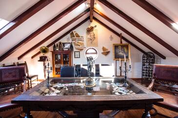 Casa può accogliere 12 ospiti. I letti sono disposti nelle camere da letto che sono 6, su 191m2. Gli ospiti hanno a disposizione il proprio terrazzo per godere nelle calde serate estive. Per il piacere totale e il relax c'è il barbecue privato solo per gli ospiti di quest'alloggio. Durante il soggiorno gli ospiti si possono rilassare nella piscina privata. L'unità d'alloggio ha delle stanze separate dal resto dell'unità. Arrivati nell'unità d'alloggio i clienti devono pagare un deposito (il prezzo è indicato sul sito).