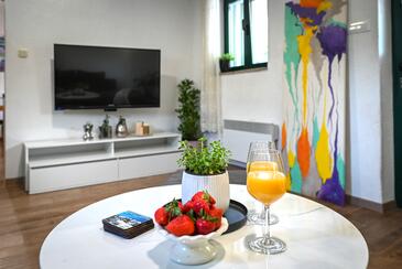 Casa può accogliere 6 ospiti. I letti sono disposti nelle camere da letto che sono 2, e nella camera di soggiorno, su 79m2. Gli ospiti hanno a disposizione il proprio terrazzo per godere nelle calde serate estive. Per il piacere totale e il relax c'è il barbecue privato solo per gli ospiti di quest'alloggio. Durante il soggiorno gli ospiti si possono rilassare nella piscina privata. Nell'unità di alloggio si possono portare gli animali domestici senza alcun pagamento supplementare.