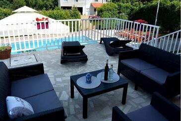Casa può accogliere 9 ospiti. I letti sono disposti nelle camere da letto che sono 5, su 172m2. Gli ospiti hanno a disposizione il proprio terrazzo per godere nelle calde serate estive. Per il piacere totale e il relax c'è il barbecue privato solo per gli ospiti di quest'alloggio. Durante il soggiorno gli ospiti si possono rilassare nella piscina privata.