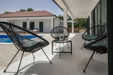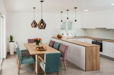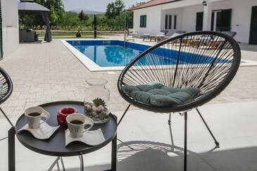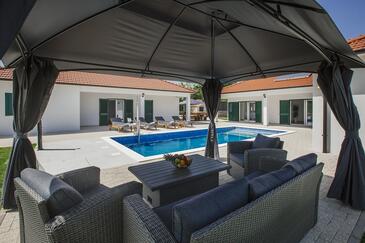 Casa può accogliere 8 ospiti. I letti sono disposti nelle camere da letto che sono 3, e nella camera di soggiorno, su 121m2. Gli ospiti hanno a disposizione il proprio terrazzo per godere nelle calde serate estive. Per il piacere totale e il relax c'è il barbecue privato solo per gli ospiti di quest'alloggio. Durante il soggiorno gli ospiti si possono rilassare nella piscina privata. Le stanze dell'unità d'alloggio non sono connesse in un insieme.