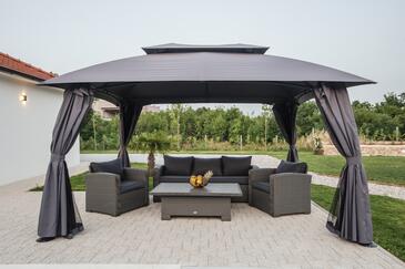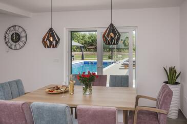 Casa può accogliere 8 ospiti. I letti sono disposti nelle camere da letto che sono 3, e nella camera di soggiorno, su 121m2. Gli ospiti hanno a disposizione il proprio terrazzo per godere nelle calde serate estive. Per il piacere totale e il relax c'è il barbecue privato solo per gli ospiti di quest'alloggio. Durante il soggiorno gli ospiti si possono rilassare nella piscina privata. Le stanze dell'unità d'alloggio non sono connesse in un insieme.