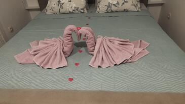 Casa può accogliere 6 ospiti. I letti sono disposti nelle camere da letto che sono 2, e nella camera di soggiorno, su 57m2. Gli ospiti hanno a disposizione il proprio terrazzo per godere nelle calde serate estive. Si può preparare il cibo utilizzando il barbecue comune. Durante il soggiorno gli ospiti possono utilizzare la piscina comune. Nell'unità di alloggio si possono portare gli animali domestici senza alcun pagamento supplementare.