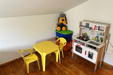 Casa può accogliere 8 ospiti. I letti sono disposti nelle camere da letto che sono 4, su 100m2. Gli ospiti hanno a disposizione il proprio terrazzo per godere nelle calde serate estive. Per il piacere totale e il relax c'è il barbecue privato solo per gli ospiti di quest'alloggio. Nell'unità di alloggio si possono portare gli animali domestici senza alcun pagamento supplementare.
