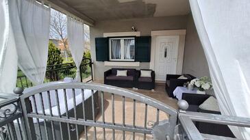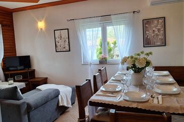 Casa può accogliere 8 ospiti. I letti sono disposti nelle camere da letto che sono 4, su 100m2. Gli ospiti hanno a disposizione il proprio terrazzo per godere nelle calde serate estive. Per il piacere totale e il relax c'è il barbecue privato solo per gli ospiti di quest'alloggio. Nell'unità di alloggio si possono portare gli animali domestici senza alcun pagamento supplementare.