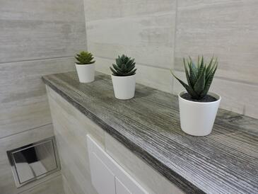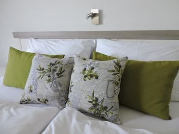 Casa può accogliere 6 ospiti. I letti sono disposti nelle camere da letto che sono 2, e nella camera di soggiorno, su 68m2. Gli ospiti hanno a disposizione il proprio terrazzo per godere nelle calde serate estive. Per il piacere totale e il relax c'è il barbecue privato solo per gli ospiti di quest'alloggio. Durante il soggiorno gli ospiti possono utilizzare la piscina comune.