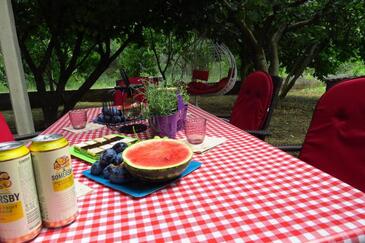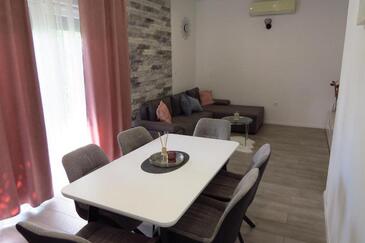 Appartamento può accogliere 6 ospiti. I letti sono disposti nelle camere da letto che sono 3, su 100m2. Gli ospiti hanno a disposizione il proprio terrazzo per godere nelle calde serate estive. Si può preparare il cibo utilizzando il barbecue comune.