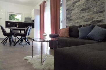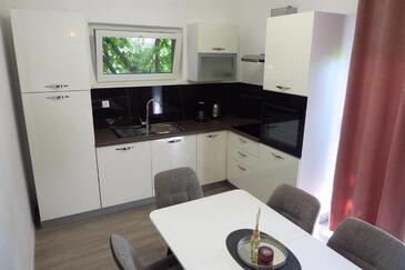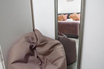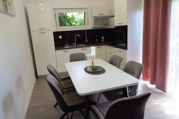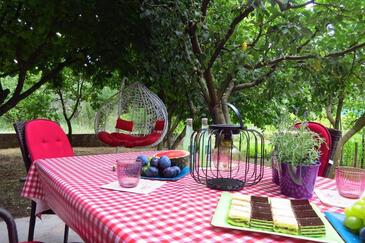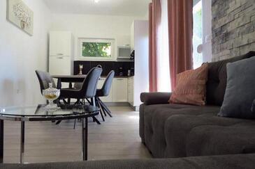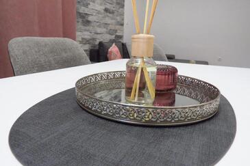Appartamento può accogliere 6 ospiti. I letti sono disposti nelle camere da letto che sono 3, su 100m2. Gli ospiti hanno a disposizione il proprio terrazzo per godere nelle calde serate estive. Si può preparare il cibo utilizzando il barbecue comune.