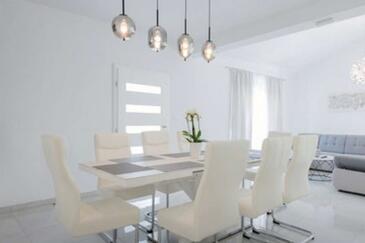Casa può accogliere 8 ospiti. I letti sono disposti nelle camere da letto che sono 4, su 154m2. Gli ospiti hanno a disposizione il proprio terrazzo per godere nelle calde serate estive. Per il piacere totale e il relax c'è il barbecue privato solo per gli ospiti di quest'alloggio. Durante il soggiorno gli ospiti si possono rilassare nella piscina privata.