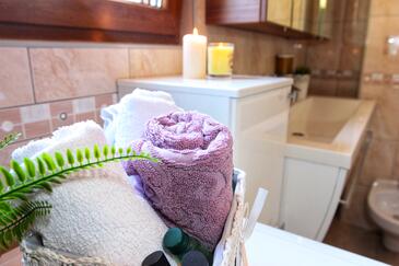 Casa può accogliere 6 ospiti. I letti sono disposti nelle camere da letto che sono 3, su 77m2. Gli ospiti hanno a disposizione il proprio terrazzo per godere nelle calde serate estive. Per il piacere totale e il relax c'è il barbecue privato solo per gli ospiti di quest'alloggio. Durante il soggiorno gli ospiti si possono rilassare nella piscina privata.