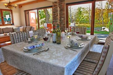 Casa può accogliere 6 ospiti. I letti sono disposti nelle camere da letto che sono 3, su 77m2. Gli ospiti hanno a disposizione il proprio terrazzo per godere nelle calde serate estive. Per il piacere totale e il relax c'è il barbecue privato solo per gli ospiti di quest'alloggio. Durante il soggiorno gli ospiti si possono rilassare nella piscina privata.