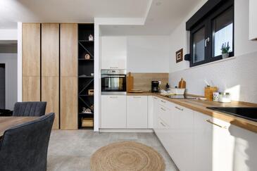 Casa può accogliere 6 ospiti. I letti sono disposti nelle camere da letto che sono 2, e nella camera di soggiorno, su 100m2. Gli ospiti hanno a disposizione il proprio terrazzo per godere nelle calde serate estive. Per il piacere totale e il relax c'è il barbecue privato solo per gli ospiti di quest'alloggio. Nell'unità di alloggio si possono portare gli animali domestici senza alcun pagamento supplementare.