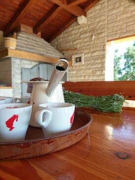 Casa può accogliere 6 ospiti. I letti sono disposti nelle camere da letto che sono 2, e nella camera di soggiorno, su 78m2. Gli ospiti hanno a disposizione il proprio terrazzo per godere nelle calde serate estive. Per il piacere totale e il relax c'è il barbecue privato solo per gli ospiti di quest'alloggio. Durante il soggiorno gli ospiti si possono rilassare nella piscina privata. Nell'unità di alloggio si possono portare gli animali domestici con un pagamento supplementare.